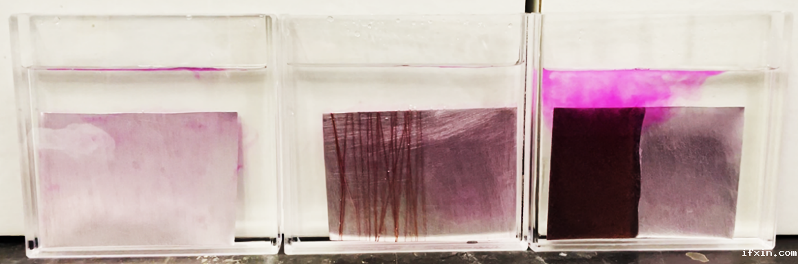 许老师基于“镁铝与水的反应现象不明显”与“教材对于电化学影响反应速率实验展示的缺失”,构建了简单的镁-铜原电池。分别设计了三组对比实验:未经处理的、缠绕铜丝、化学镀铜的镁片分别投入冷水中,并滴入酚酞增加可视化效果。通过观察镁与冷水的反应现象的区别,学生可以更加深入的理解原电池的原理。