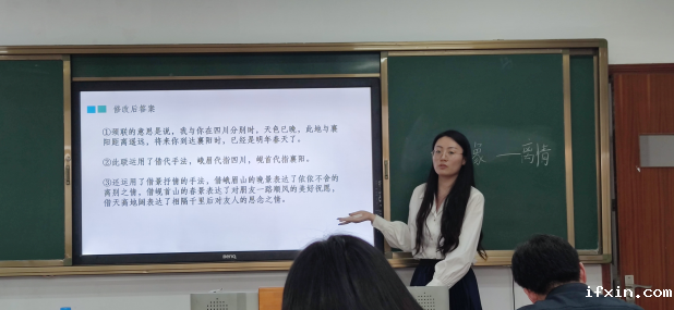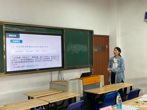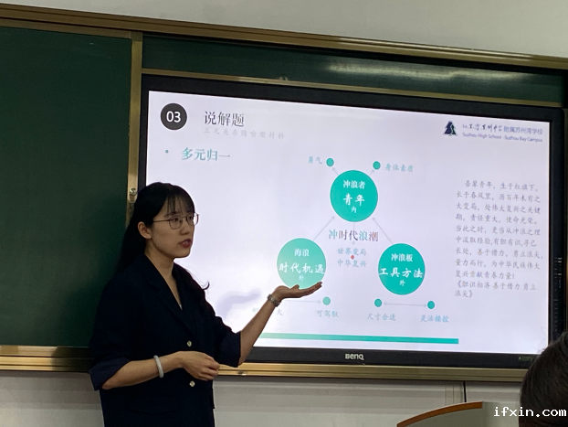 包歆鎏老师对小说中“反复出现的物象”这一常见题型进行了梳理与拓展,指出这是小说解码的关键钥匙。沈舒昕老师从小说教学的真实困惑出发,聚焦于“矛盾冲突”这一有力抓手,抽丝剥茧地梳理了小说《姹紫嫣红开遍》中的一道题。夏冬老师选择了深圳一模作文“冲浪”,对其中蕴含的三元关系进行了透彻的分析,以绵密的语言与从容的教态展现了扎实的基本素养。高圆圆老师高屋建瓴,根据近年来高考的趋势分析了信息类文本最后一题的“变式”形态。张辰老师充分贯彻“学生主体”的理念,创造性地改编了现有题目,使题目背后的底层逻辑以更清晰的面貌呈现给学生。与此同时,张老师设身处地地带入学生的认识情境,个性化地提出了“以题解题”的小窍门,给观摩老师们留下了深刻印象。胥纯潇老师以古诗鉴赏为例,系统阐释了解读诗歌的六个途径,在此基础上,将参考答案进行了更为规范与全面的调整。王映雪老师提供了经典文本《乞力马扎罗的雪》的一道自编题,以“豹子”这个物象带动对小说的解读。现场展示的老师们或思路清晰,或博学洽闻,可谓各有所长。来自园区校的俞果岑老师因事无法到场,仍以视频录课的方式分享了她的思考,充分展现了青年教师们对本次比赛的高度重视与热情参与。